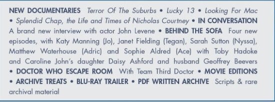 Season 21 of Doctor Who, season 3 of the Fifth Doctor on Blu-ray, my first Doctor. What I remember of the Fifth Doctor is not much but I knew that I liked it even though I've read over the years that his stories are not favorites among the fans. I really am temped to purchase the sets but till now I still didn't take the step. If I ever do, it will be the standard editions. Ps, click on the picture beside the Doctor Who cover to see more details of the release! It really does look nice!